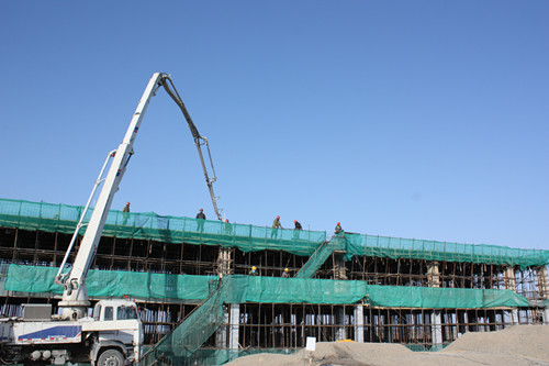 2013年10月31日,西安新能源分公司承建的新疆国投伊吾淖毛湖风电场一期49.5MW工程220KV升压站工程施工现场热火朝天,下午17:58分,随着最后一方混凝土的浇筑,生产综合楼顺利封顶。