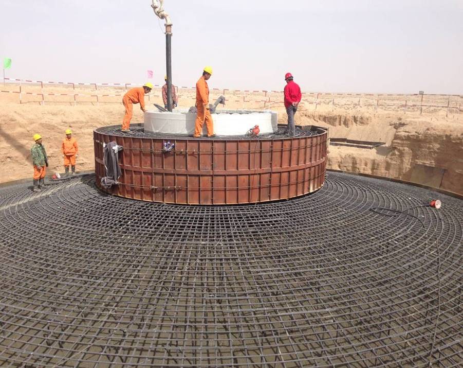 中广核民勤风电项目首台风机基础混凝土开盘浇筑