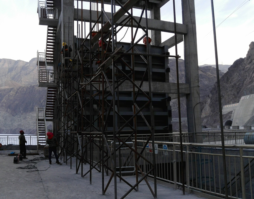气温依旧不停的降着,临时的工棚扛不住寒风,混凝土的冰冷渗透着脚底的皮肤。为了保证进水闸门能在冬季库区冰层中活动、为了建设方对我们的信任,项目部组建了突击团队,抢在冬季最冷气候来临前完成肩负的重任。面对高难而艰险的施工任务,技术人员在现场反复讨论着;面对冬季施工安全隐患的危险因素,安全员不停地念叨着保障安全的信号;面对施工难度的全方位思考,施工员脚步不停的丈量和标号,工人们快速的挂着安全绳焊着裂缝。
