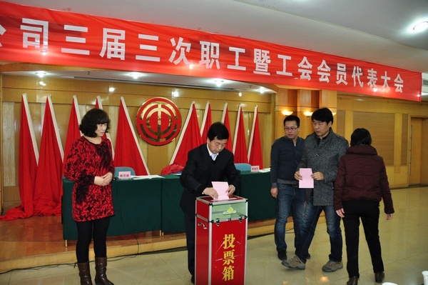 大会号召全体职工,在公司领导班子的正确领导下,全面贯彻落实党的十八届三中、四中全会精神,落实科学发展观,进一步振奋精神,大胆面对复杂多变的市场形势,以求真务实的作风做好每一项工作,齐心协力,发奋图强,确保职代会确定的各项目标顺利实现,为加快公司转型发展而努力奋斗。