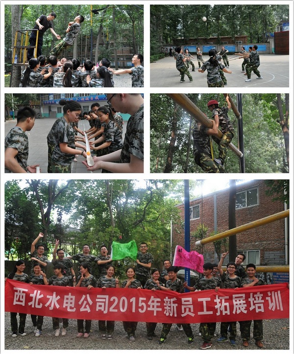 2015年7月6日至10日,西北水电公司在西安举办了2015年新员工入职培训。本次培训共有21名新员工参加,公司领导和相关部门的负责人进行了授课,培训的主要内容包括公司历史发展沿革与企业文化、三标管理体系、项目管理与新能源项目知识、安全生产、人事管理制度、团青知识与商务礼仪、法律基础知识与法律风险防控等,并组织新员工参观了西北院展览馆,开展了为期两天的拓展训练。
