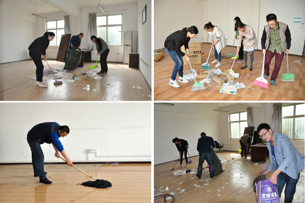 4月22下午至24日,团员青年在公司团委组织下迅速投入劳动,有的用扫帚打扫垃圾,有的用垃圾桶进行清运,有的忙着搬运办公家具,有的用拖布清洗地面,有的忙着擦洗柜子和桌椅,大家配合得井然有序、有条不紊。劳动中大家干劲十足,顾不上弄脏的衣服,一心想着尽快完成清扫任务,还办公区一个整洁、干净的面貌。“团结就是力量”,经过大家的共同努力,办公区内的垃圾、废旧纸张、书籍清扫一空,看着焕然一新的办公环境,大家都感受到劳动带来的快乐和成就感。