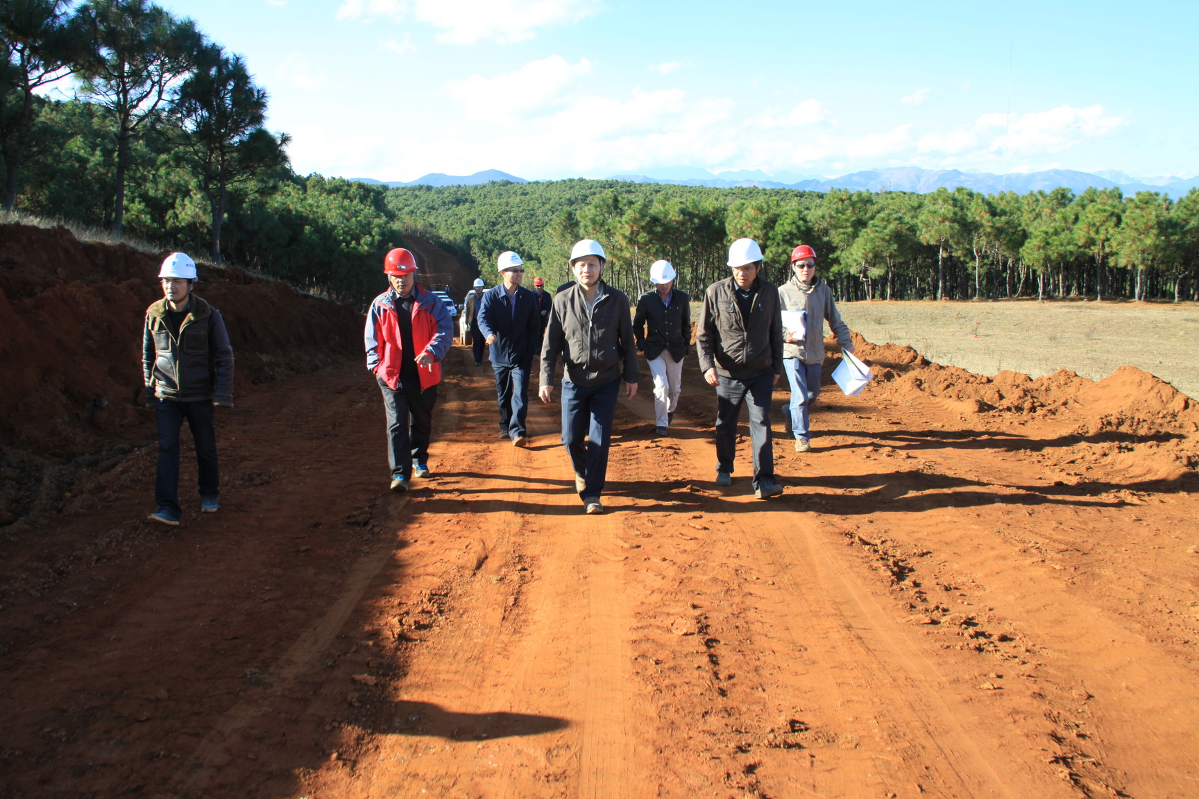 2013年11月21日,中电投云南国际工程部副处长万成军、周海慧等一行到昆明小白龙风电场现场检查指导我公司承建的场内道路2#、3#主线的施工情况。