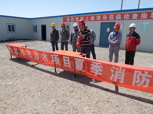 2014年5月13日,西北水电公司西安新能源分公司哈密苦水升压站项目部在工地开展了2014年夏季消防演练活动。监理单位、总包单位人员应邀参加了本次消防演练。