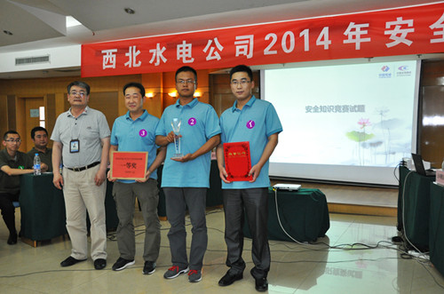 6月30日,公司在西北院办公东楼18层多功能厅举办了“西北水电公司2014年安全知识竞赛”活动。公司领导班子成员及西安片全体员工参与了本次活动,西北院综合管理处处长李政莅临并指导本次活动。竞赛以“掌握安全生产知识,争做遵章守纪员工”为主题,来自公司机关、岩土工程分公司、勘探工程分公司、西安新能源分公司和西北造船厂5支代表队的15名队员参加了比赛,通过必答题、抢答题、案例分析题和风险题四轮激烈的竞答,最终岩土工程分公司代表队凭借缜密的案例分析和出色的团队协作能力以450分的成绩获得一等奖,机关代表队获得二等奖;勘探工程分公司、西安新能源分公司和西北造船厂三支代表队获得优秀奖。